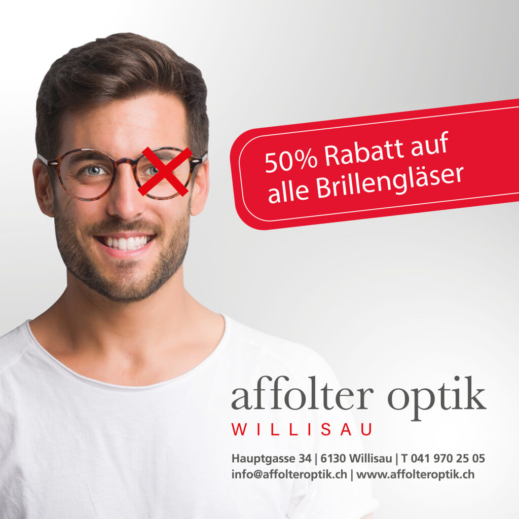 Werbung – 50 Prozent Rabatt auf alle Brillenglaeser